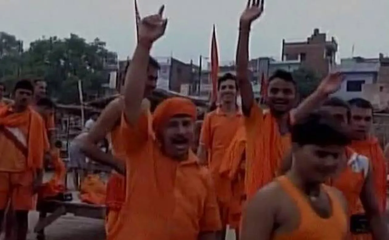 Allahabad: Kanwariyas thronged Triveni Sangam in Allahabad ahead of holy month of Saawan which begins today #UttarPradeshpic.twitter.com/sqpG3yuaSE