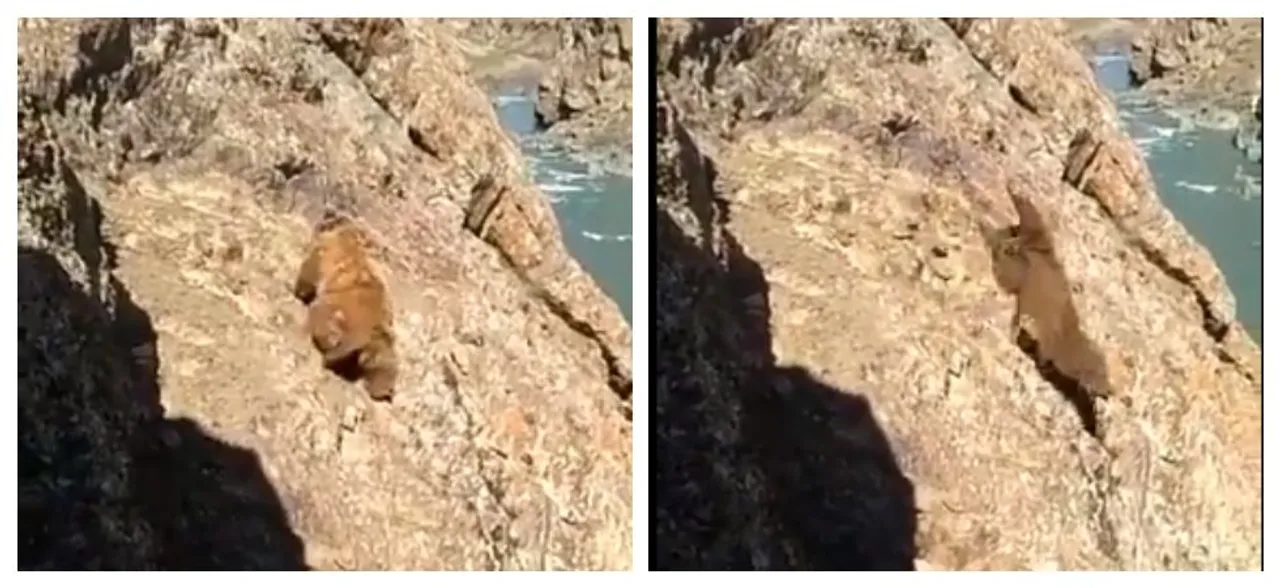 Bear falls off cliff after locals pelt it with stones (Photo: Twitter)
